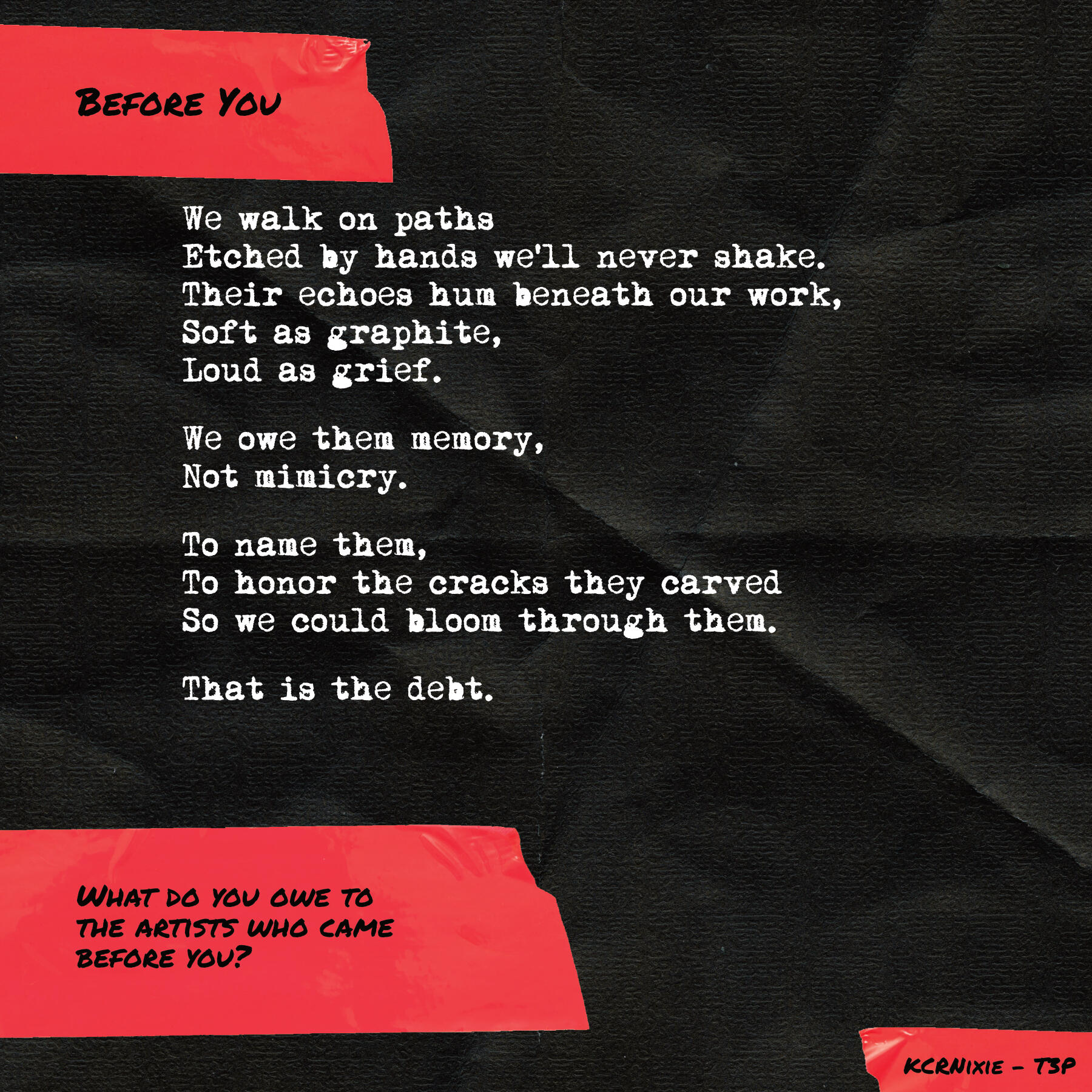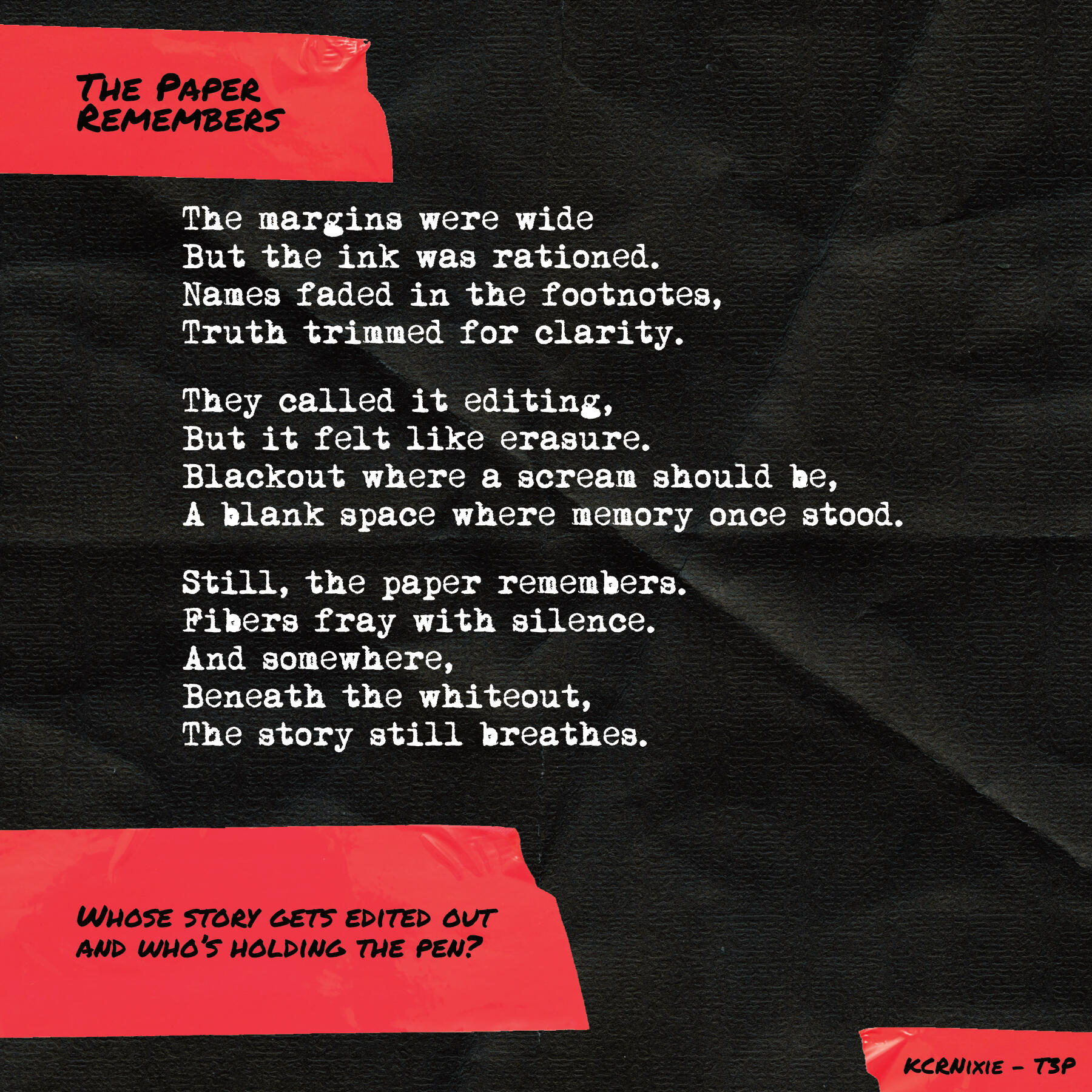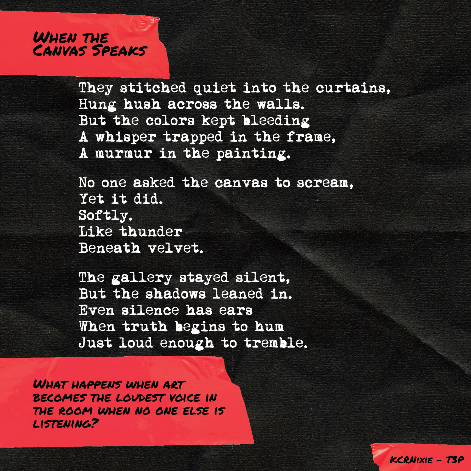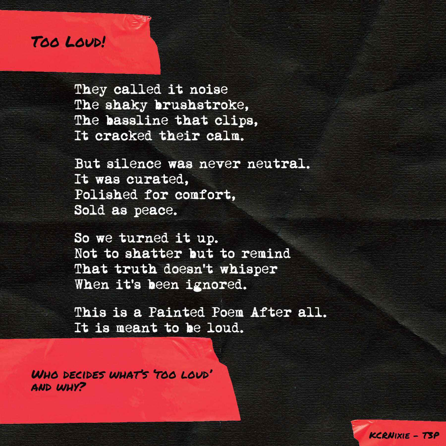All of the writing is displayed in separate "posts" to make it more digestible for social media. Because Twitter limits a user to four images per post, this is done in batches of four or less. Is this more or less convenient for the audiences? Is the system set up for the artist or against the artist?Follow The Painted Poems Project closely on the socials.